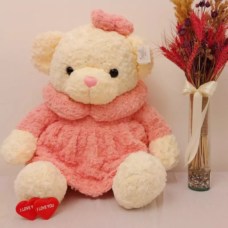 عروسک پولیشی خرس دختر لباس رز 70 سانتی متر
