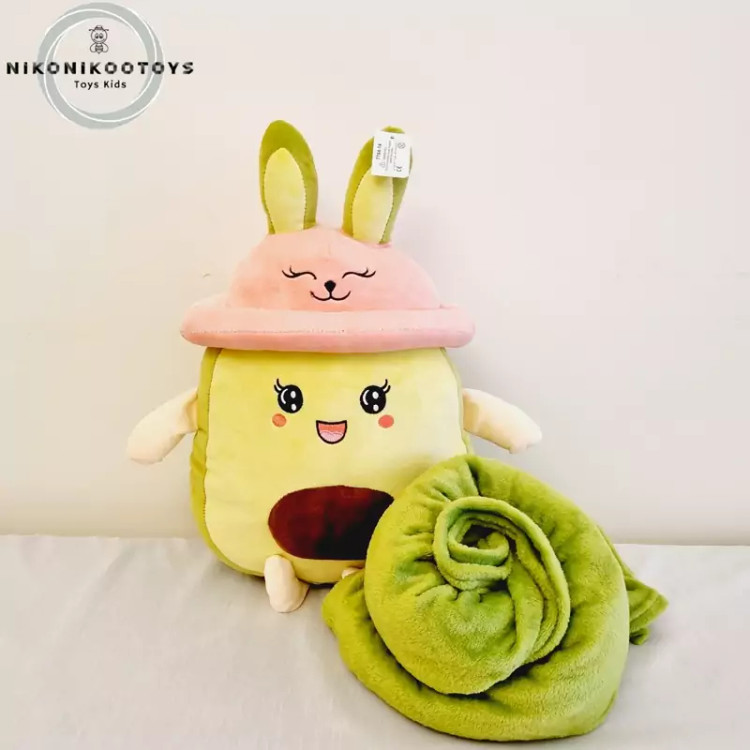 عروسک پولیشی آووکادو کلاه خرگوشی 45 سانت با پتو